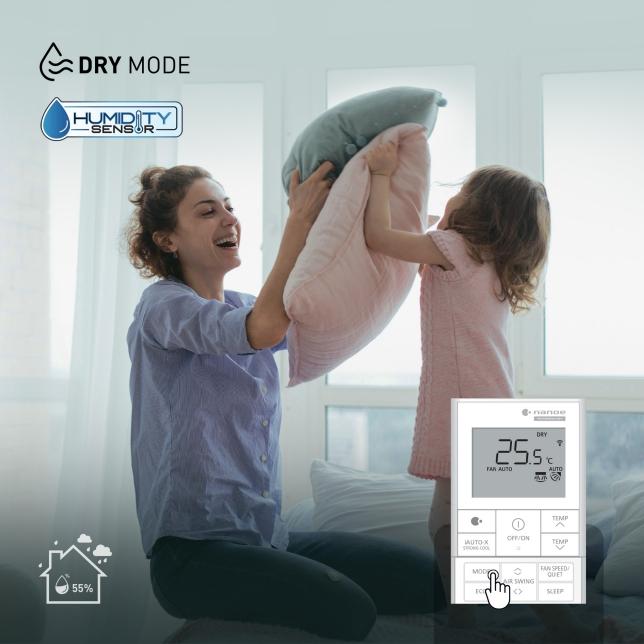 Advanced humidity control operated by Dry Mode and iAUTO-X with built-in Humidity Sensor